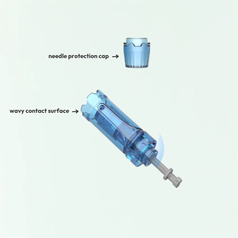 Cartridges are single-use only. This helps avoid cross-contamination and ensures that needles are at their sharpest. Dull needles could cause damage to the skin.