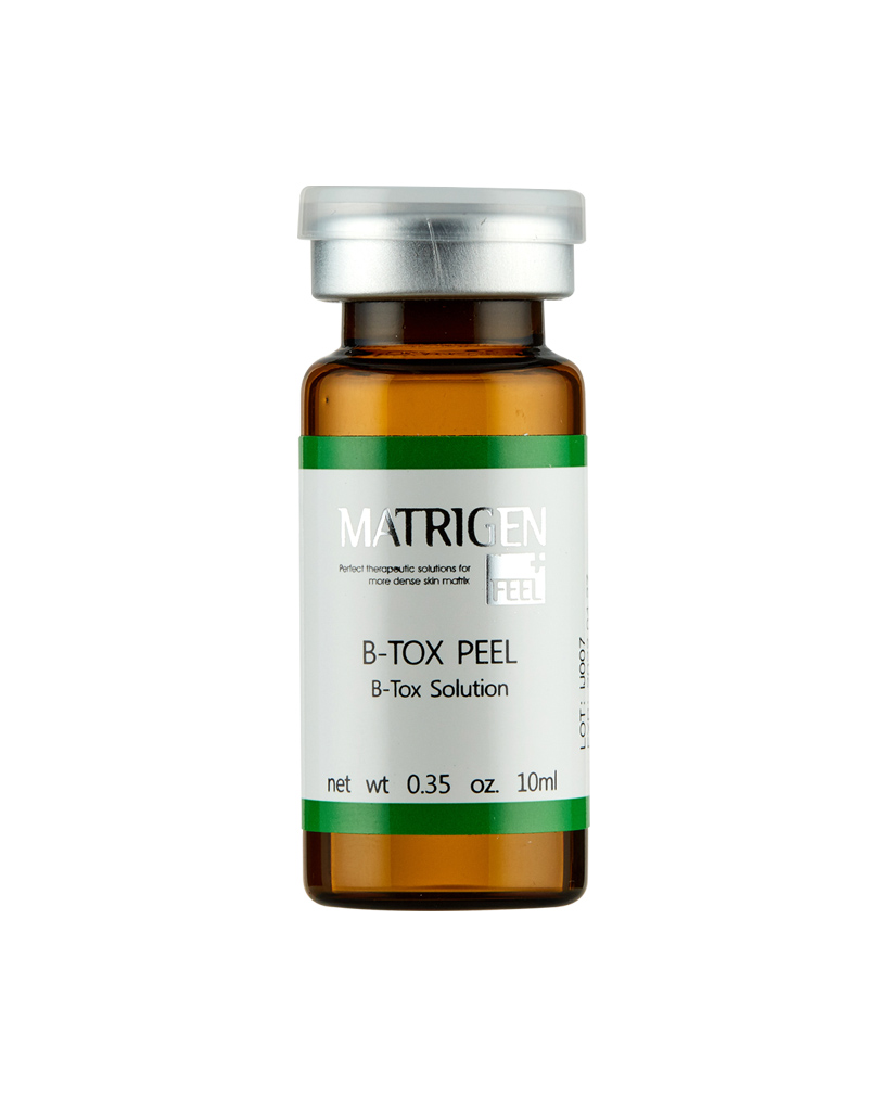 The Matrigen B-Tox Skin Renewal System, is also named the Algae Peel or Invisible Needle Peel. By using Biological Technology, scientists use the natural ingredient and extract into Silitox Needles (Needle Sponge Extract).- A very tiny micro needles size within um. After massage B-Tox peel on the face, Silitox needles will infuse into the skin layer to stimulate and regenerate the skin.